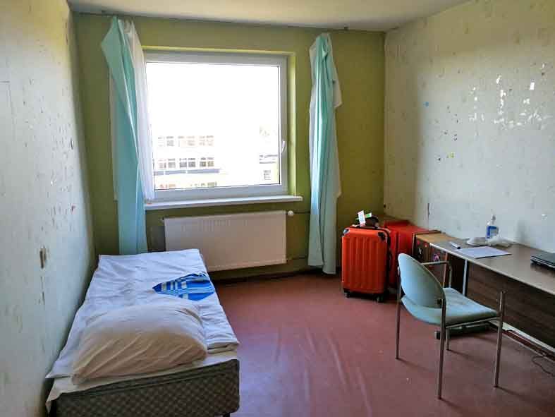 Praleidęs naktį šiuose apartamentuose, sulaukiau skambučio iš Biržų rajono savivaldybės atstovės Erikos Kazlauskaitės, jog ruoščiausi – mane perveš į kitas patalpas – Biržų technologijų ir verslo mokymo centro bendrabutį. Čia patalpos daug geresnės, erdvesnis kambarys, belaidis internetas, be to ir maitinimas suorganizuotas – maitina tikrai dosniai ir kokybiškai. Beje, bendrabutyje, gyvena 10 parvykėlių iš svetur.