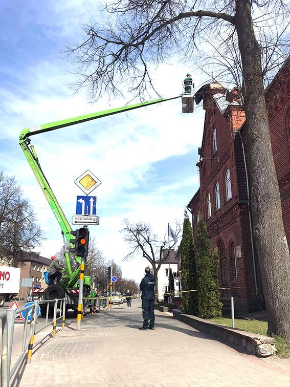 Pirmadienį buvo gautas pranešimas, kad nuo pašto pastato krinta skarda ir plytos.
