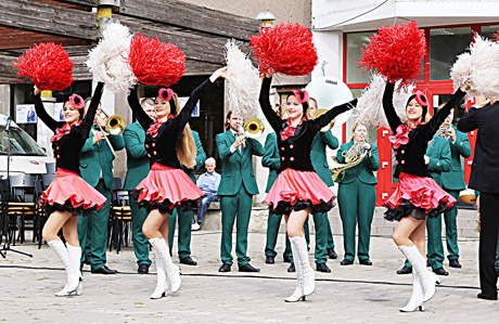 KONCERTAS: Pučiamųjų instrumentų orkestrų koncertus puošė šokėjos.
