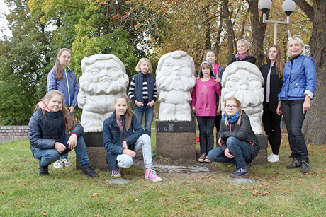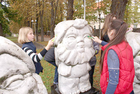 GE­RU­MAS: Šiau­lių dai­lės mo­kyk­los mo­ki­nės ir mo­ky­to­jos įgy­ven­di­no ge­ru­mo ak­ci­ją, skir­tą Mo­ky­to­jų die­nai – nuo ap­na­šų nu­va­lė dau­ge­lio mė­gia­mą skulp­to­rės Bi­ru­tės Kas­pe­ra­vi­čie­nės kū­ri­nį „Trys nykš­tu­kai“.