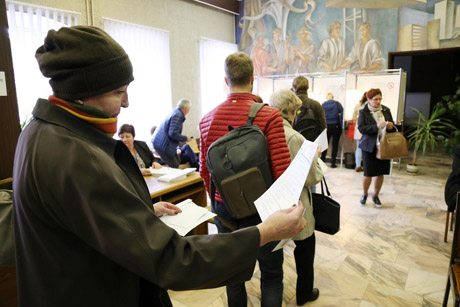 BALSAVIMAS: Rinkimų dieną, sekmadienį, negalintys atvykti balsuoti į savo rinkimų apylinkę šiauliečiai balsavo iš anksto Šiaulių miesto savivaldybėje – stovėjo eilėje norėdami atlikti pilietinę pareigą.