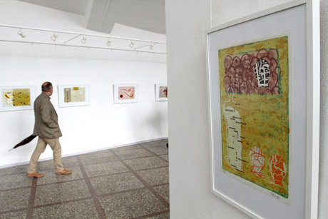 PARODA: Piterio Grifino paroda „Ugnies suvienyti“ atlikta šilkografijos technika ir papildyta Pablo Nerudos poezija.