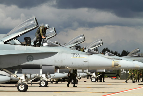 Vakar Šiaulių padangę praskrodė keturi darniai išsirikiavę Kanados karališkųjų oro pajėgų naikintuvai F-18A „Hornet“ ("Širšė"). Rugsėjo 1-ąją kanadiečiai kartu su portugalais perims NATO oro policijos misiją. Kanada, reaguodama į įvykius Ukrainoje, šioje misijoje dalyvaus pirmą kartą.