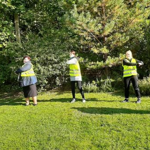 Paskui renginio kūrybines veiklas pakeitė sportinės. Kiekviena klasė paruošė trumpą mankštą pagal skanduotę ir išmokė ją padaryti kitus. Taip buvo pasiruošta tradiciniam rudeniniam krosui „Poeto K. Binkio takais“. Jaunieji bėgikai entuziastingai įveikė trasą kartu su mamytėmis, bibliotekininke Agne ir ketvirtokų mokytoja Virginija. Po bėgimo, bibliotekininkės pasiūlė suvaidinti burtų keliu tekusią K. Binkio poemos vaikams ištrauką. Renginio dalyvius pralinksmino į vaidinimą įsitraukusios ir mažųjų mamos.