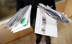 Gimnazistas Žydrūnas pasakojo, jog šeštadienį, eidamas pro parduotuvę, pirmiausia pamatė spalvotų reklaminių lankstinukų krūvelę. Netoliese pastebėjo boluojant vokus, kurių buvo storas pluoštas.