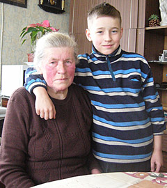 PAGALBININKAS: Genovaitės Katinienės pagalbininkas anūkas Mindaugas vis sukasi apie močiutę.