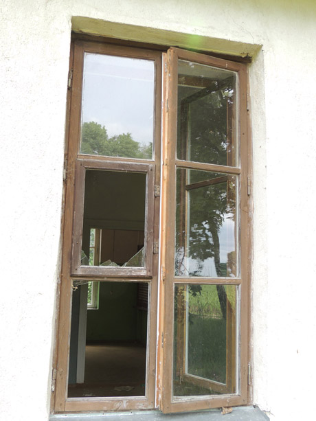 ANGA: Pastato langas – atidarytas, išdaužtais stiklais.