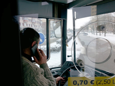 „TVARKELĖ": Keleivį pašiurpino miesto maršruto autobuso vairuotojas: viena ranka vairuoja, plepa mobiliuoju telefonu net sukdamas slidžiame kelyje.