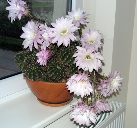KAKTUSAS: Kaktusas dovanojo 15 žiedų. Dar 10 žiedų turėtų sužydėti o kelių savaičių.