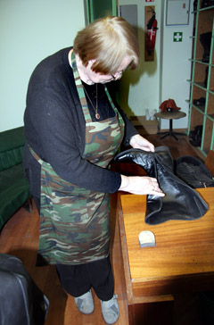 PRAŠYMAS: „Šią žiemą padaugėjo klientų, kurie prašo batus sulopyti“, — sakė meistrė Birutė ir parodė, kurioje vietoje avalynė dažniausiai suplyšta.