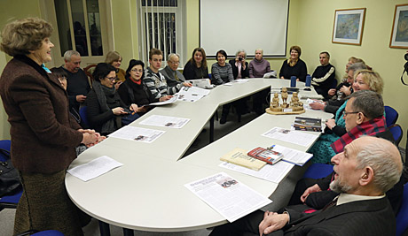 PAMINĖJIMAS: Į popietės, skirtos K. Donelaičio 302-ioms gimimo metinėms, dalyvius kreipėsi K. Donelaičio draugijos Šiaulių skyriaus pirmininkė Izolina Natalija Lingienė (kairėje).
