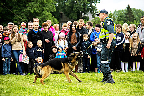 ŠVENTĖ: Bendruomenės švetėje dalyvavo ir pareigūnai. Kinologas rodė augintinio sugebėjimus.