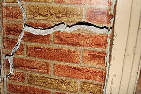 PLYŠYS: Keliose vietose sienoje atsivėrė kelių centimetrų pločio plyšiai.
