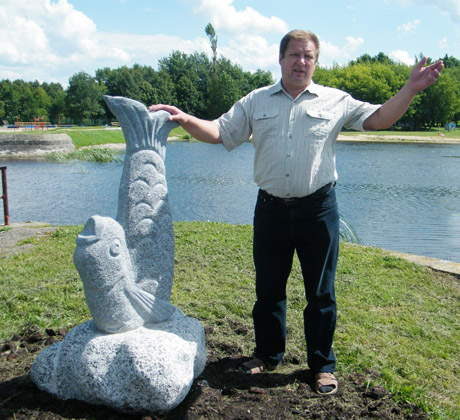 „ŽUVIS": „Tegul Kelmės žvejai pamato, ką čia galima pagauti“, – sakė prie Kražantės pastatytos skulptūros „Žuvis“ autorius, kelmiškis Valdas Bandza.