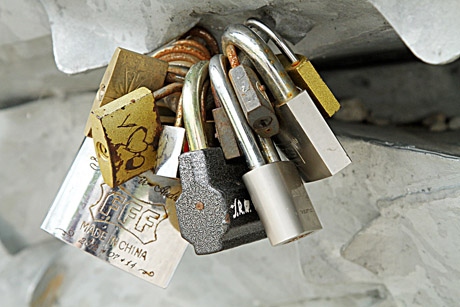 SPYNOS: Šiauliuose nėra įsigalėjusi tradicija per vestuves kabinti spynas – gal todėl, kad mieste nėra tiltų. Bet keletas spynų yra užkabinta ant „Geležinės lapės“ nasrų prie Talkšos ežero.