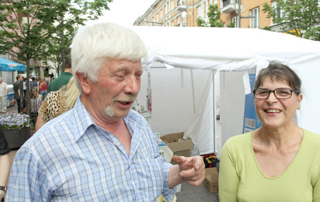 Šiauliečių senjorų pora Adolfas ir Virginija MIKALAJŪNAI vaikštinėja tarp mugės palapinių. Tik dairotės, o gal ką pirksite?