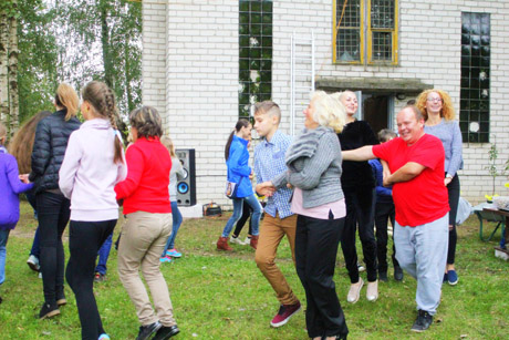 Šven­tės da­ly­viai su­ko­si ma­lū­nė­lio rit­mu, try­pė ir dai­na­vo... Va­ka­ro kul­mi­na­ci­ja ta­po drau­giš­kas tor­to ra­ga­vi­mas.