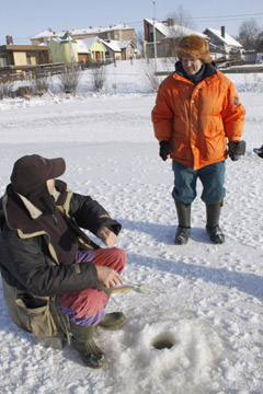 Lauke – minus 20. Šiauliuose ant Prūdelio vyrai plačiais kastuvais žeria sniegą – bus čiuožykla. Kiek tolėliau sėkmės laukia žvejai. Šaltis dirbantiems ir žvejojantiems – nė motais.