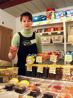 Pardavėja Gražina įsitikinusi: kalbos, jog šokoladas taiso nuotaiką — ne iš piršto laužtos. Taip tvirtina jos nuolatiniai klientai, kurie specialiai užsuka į parduotuvę — „nuotaikos pasigerinti.“