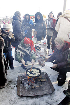 Pavargę nuo pramogų galėjo paskanauti čia pat keptų karštų įvairių rūšių blynų, paragauti tradicinio Užgavėnių patiekalo – tiršto šiupinio ar pasišildyti karšta arbata.