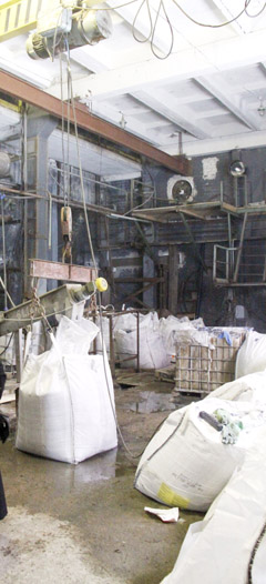 MAIŠAI: Spalvotais varvekliais apkibusio cecho viduje buvo matyti maišai, kuriuose vėliau paaiškinta, — dumblas.