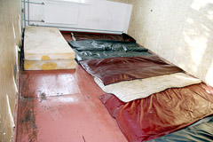 PRIEGLOBSTIS: Šiaulių nakvynės namuose šalantiems benamiams paruošti ant grindų sukloti čiužiniai. Laikini guoliai patiesiami ir koridoriuje.