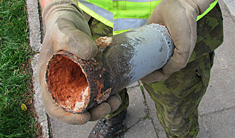 Prie sprogmens žmogaus prisiliesta ir šią vasarą. Restauruotojai jo galą užtepė raudonu glaistu, kurį naudoja plytų sienų plyšiams užtaisyti. Prie sienų spalvos priderintas metalas nebebuvo taip aiškiai pastebimas iš tolėliau.