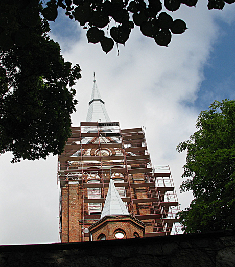 Akmenės bažnyčios sienas šią vasarą restauruojančios įmonės darbininkai ketvirtadienio pavakarę baigė darbą anksčiau, negu įprasta.