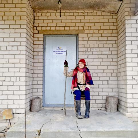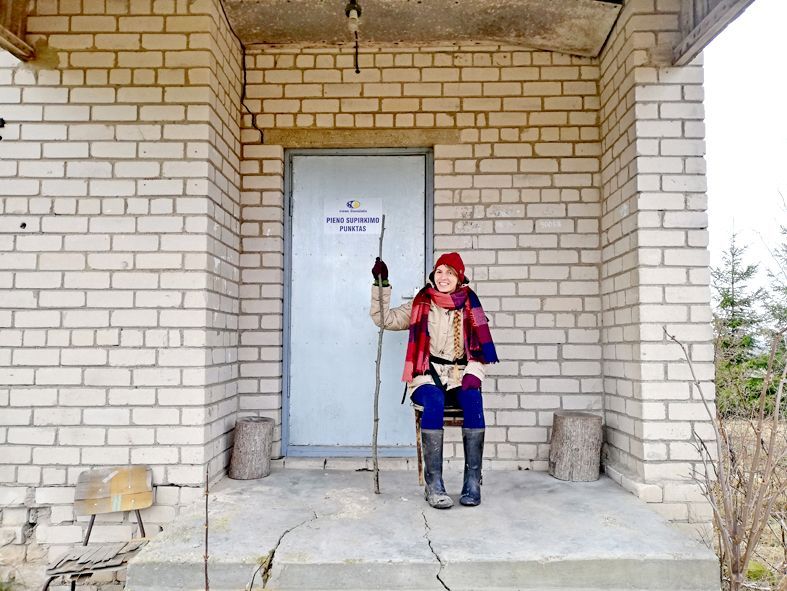 Maždaug po pusvalandžio atsiduriame šalia Pučiakalnės kaimo. Aplankom apleistą trobą su neįprastai sujungtais rąstais ir pakylam kalniuku į patį kaimą. O šis mus nuliūdino – nors Vasario 16, nėra nei vienos iškeltos vėliavos. Na, bet radom pieno supirkimo punktą…