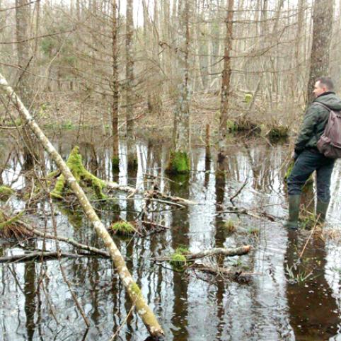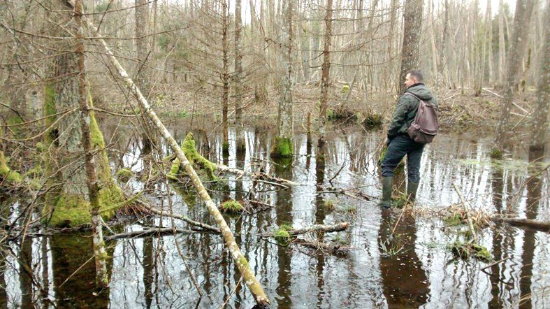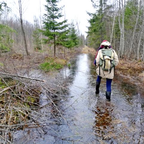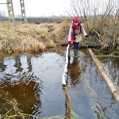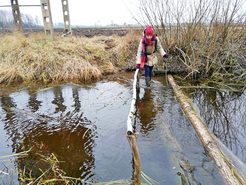 Keliasdešimt metrų bridę per pelkę, atsitrenkėm į platų, gilų griovį, kur, atrodo, karaliauja tik bebrų šeimynos. Nei vienoj kitoj pusėj nematyti jokio pervirtusio rąsto, kuriuo galėtume pereiti. Taigi, klausimas – eiti į kairę ar į dešinę?