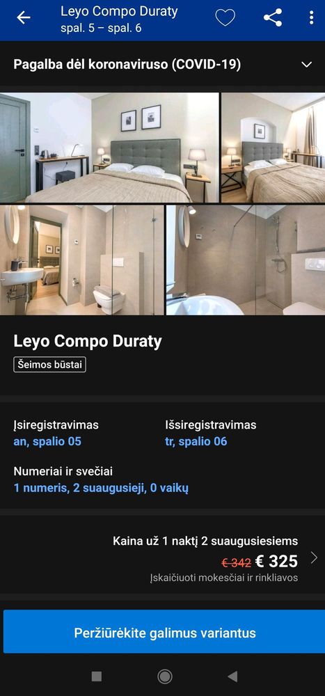 Pabandžius užsisakyti pasirinktą kambarį, iškart nukreipiama į išankstinį apmokėjimą –  jo rezervacija negalima, rašoma, kad „saugiai apmokėsite iš anksto per booking.com, tačiau apmokėjimas, atšaukimo atveju, nebus grąžinamas.