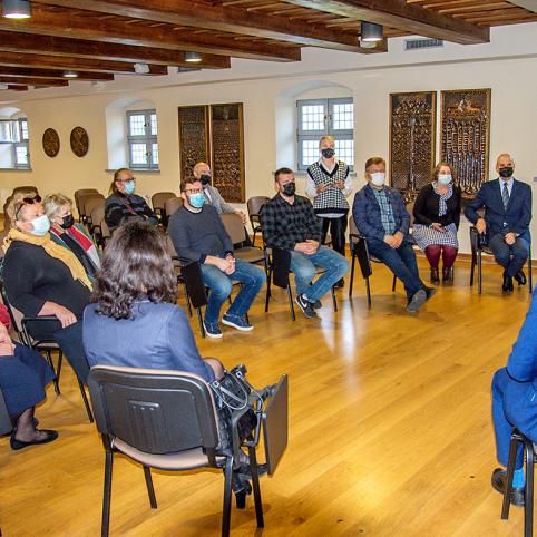 Prie senojo pašto pastato ministrą S. Kairį pasitiko paveldosaugininkas Dalius Mikelionis, kuris jam pristatė pastato būklę, istoriją ir perspektyvą. Ministras domėjosi, ar pastato įsigijimui pritarė savivaldybės tarybos nariai. Savivaldybės administracijos direktorė Irutė Varzienė svečiui paaiškino, kad didžiausios diskusijos kilo dėl pastato išlaikymo, nes ši atsakomybė, bet kokiu atveju guls ant gyventojų, mokesčių mokėtojų, pečių, o jų rajone nuolat mažėja. „Turėjome pasverti visus kaštus. Paveldo objektas – viskas daug brangiau“,- sakė I. Varzienė. Vaikščiodamas ir žiūrinėdamas senojo pašto pastatą, ministras neslėpė susižavėjimo. „Žinokit, vis tiek pagarba jums, nes kai didžiųjų miestų – Kauno, Klaipėdos savivaldybės sako, kad viską perims tada, kai viskas bus sutvarkyta ir bus tik įteikiami raktai. Žavi, kad savivalda pati ėmėsi iniciatyvos“,- pagyrė S. Kairys. Jam replikavo D. Mikelionis, pareiškęs: „Kiek paminklų turi Kaunas? Biržai šešis kartus griauti. Mes neturime senų pastatų“. Ministras atkreipė dėmesį į miesto gyvenamuosius namus ir domėjosi, kodėl dominuoja raudonų plytų mūrai. Jam paveldosaugininkas paaiškino, kad tai yra šio krašto specifika. Netoliese buvo Kraštų plytinė, kurios gaminiais ir buvo statomi pastatai Šiaurės Lietuvoje.