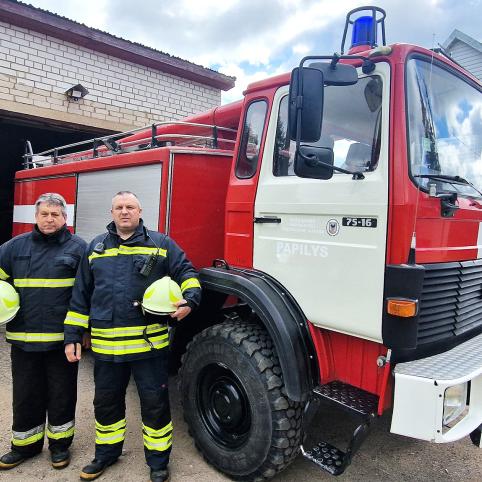 Artėjant Šv. Florijono dienai, kuri minima gegužės 4-ąją, tradiciškai kalbiname ugniagesius. Šį kartą svečiavomės Papilio miestelio ugniagesių komandoje, o mūsų pašnekovai – du tvirti vyrai, turintys skirtingą patirtį: šį darbą 30 metų dirbantis Vytautas Vilimas ir gaisro gesinimo „krikšto“ dar negavęs Valdemaras Lapėnas.