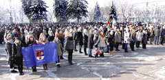LIETUVA: Šiauliečiai, susikibę rankomis, sudėliojo žodį „Lietuva“.