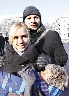 Šiauliečiai Tadas ir Violeta su vežimėlyje suvystytu vaikučiu sakė atėję į šventę patriotinių jausmų vedini.