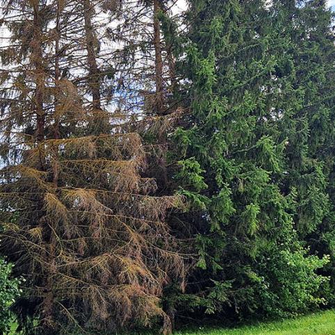 Į redakciją paskambinęs Rinkuškių gyventojas Saulius stebėjosi, kodėl vienur Biržų rajone yra kertami ne tik pažeisti, bet ir geri medžiai, o štai kitur – nudžiūvę paliekami džiūti toliau ir kenkėjais užkrėsti kitus. Toks nudžiūvusių eglių vaizdas atsiveria važiuojant vadinamu aplinkkeliu iš Astravo į Rinkuškius.