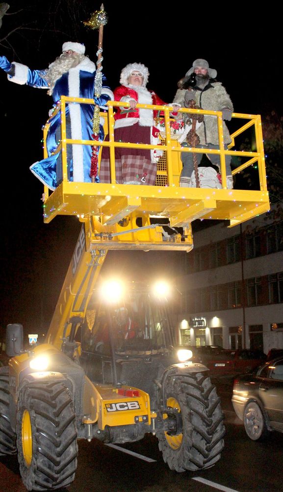Bet vi­sų la­biau­siai vi­siems rū­pė­jo, ka­da gi pa­si­ro­dys Ka­lė­dų se­ne­lis ir bus įžieb­ta pa­grin­di­nė mies­to eg­lė, šį­met pa­si­puo­šu­si tau­ti­nių dra­bu­žių raš­tų mo­ty­vais. Net­ru­kus il­gai lauk­tie­ji per­so­na­žai pa­si­ro­dė. Jie at­vy­ko kiek neįp­ras­tu trans­por­tu – sta­ty­bi­niu bokš­te­liu. Gal taip bu­vo kur kas ge­riau ma­ty­ti, kaip at­ro­do Bir­žai?.. Su­lauk­ta ne vie­no, o net dvie­jų se­ne­lių, Snie­guo­lės ir Ka­lė­dų bo­bu­tės. Į sce­ną jie li­po pa­skui sa­ve bars­ty­da­mi sal­dai­nius, o vie­nas Ka­lė­dų se­ne­lis pri­si­pa­ži­no at­ke­lia­vęs iš gi­rių glū­du­mos, iš pa­ties Čep­ke­lių rais­to.