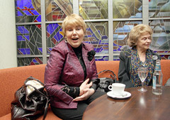 — O aš turiu tokią geriausią draugę (rodo į Vaivą Mainelytę — red. past.), kuri mane taip įskaudina ir taip įžeidžia... Įsivaizduokite sau, man insultas, veidas sutrauktas, o ji ateina, perkreipia taip pat veidą ir sako: „Gal tau padažyt raudonai lūpas?“. Sakau perkreipti veidu: “Padažyk“, ir padažė raudonai. Siaubas, nei Hičkokas (siaubo filmų režisierius — red.past.) taip nesugalvos.