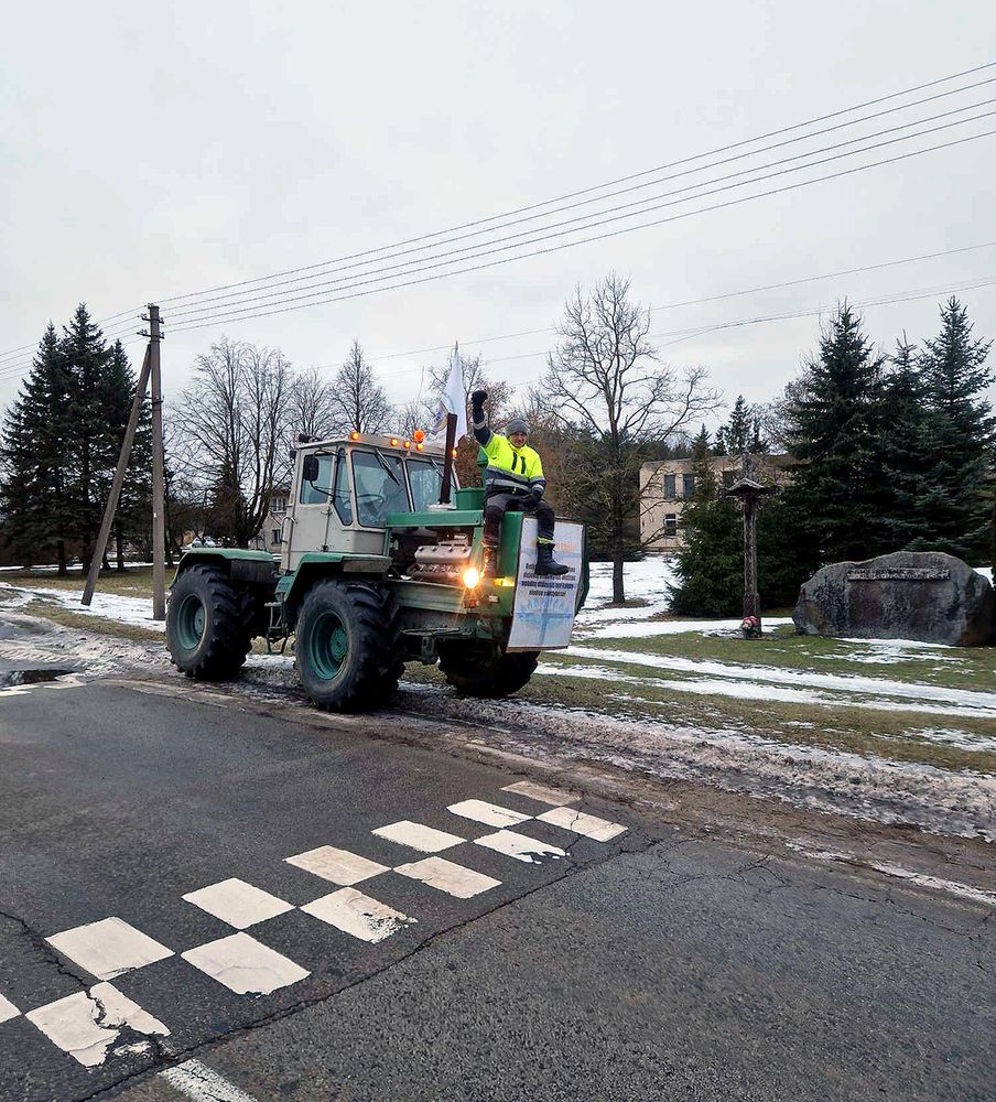 Daugiau nei 40 traktorių išriedėjo į Vilnių piketuoti prie Vyriausybės ir keli šimtai ūkininkų iš Biržų krašto. Į istorinę kelionę leidosi ir Kintas Marinskas, kuris tokiai kelionei paruošė savo galingą traktorių T – 150.