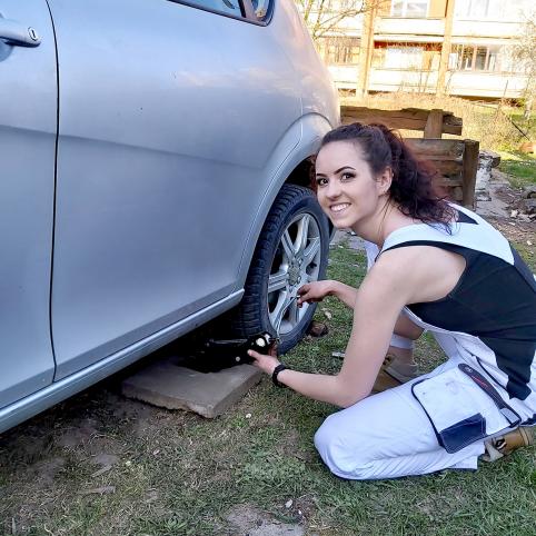 Neseniai radau savo vaikystės piešinį, kuriame piešiau svajonių profesiją. Jame nupiešiau, kaip remontuoju automobilį. Piešinys mane nustebino. Po dešimtos klasės buvo kilusi mintis stoti į Biržų technologijų ir verslo mokymo centrą ir kartu įgyti mechanikės profesiją. Bet persigalvojau. Užtai dabar su kolege iš Pasvalio, su kuria ruošiamės dalyvauti lenktynėse, vis važiuojam į Vaškus į garažą. Mums net kirba tokia mintis po mokslų įkurti moterų autoservisą! Baigusi mokyklą, svarsčiau eiti 9 mėnesiams į kariuomenę. Tačiau nutariau pabandyti dar vieną dalyką, kurį mėgstu – studijuoti slaugą, įgyti slaugytojos profesiją. Mano mama slaugytoja. Gydytojos profesiją atmečiau, nes savimi nepasitikėjau. Pavyko sujungti tris tikslus, kuriuos turėjau nuo vaikystės: kariuomenę, slaugą ir automobilius. Studijuodama slaugą, galiu būti ir kare savanore, o vakarais – į garažą!