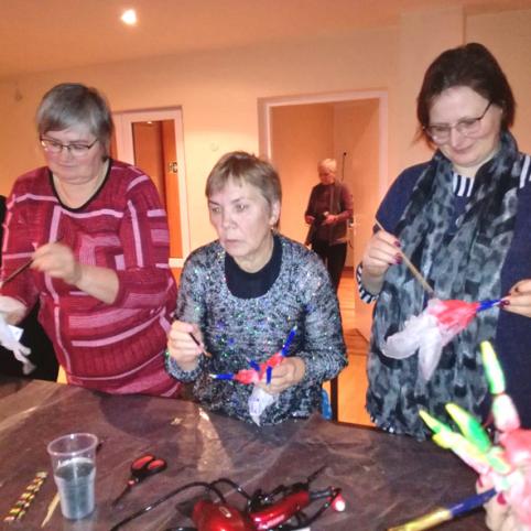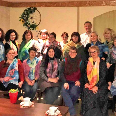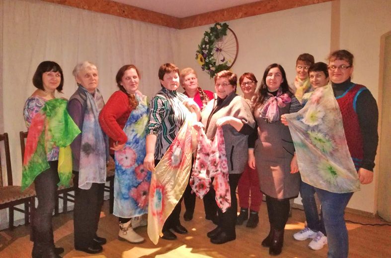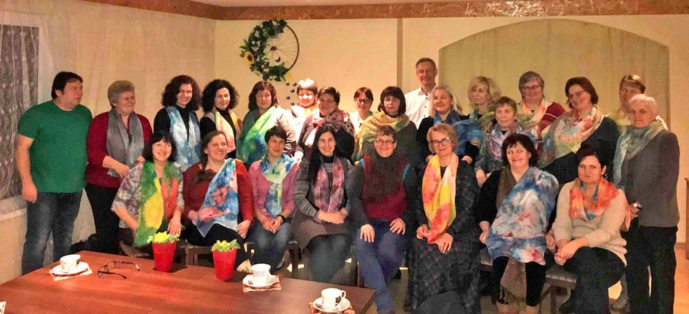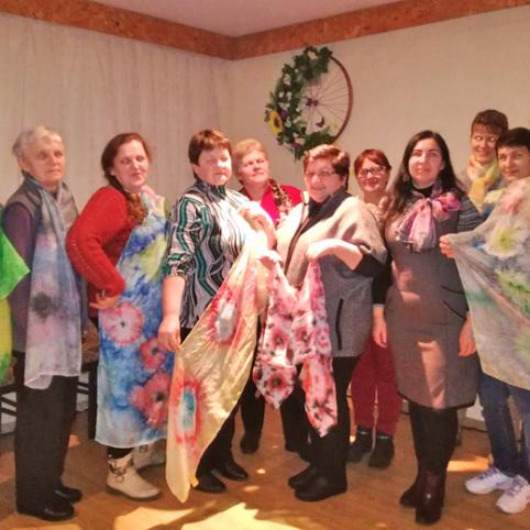 Biržų rankdarbių asociacijos „Fantazijų skrynia“ atstovės Banga Joneliūkštienė ir Jurgita Čeponienė vedė edukacinį užsiėmimą tema "Šilko tapyba ant šilko Shibori technika". Po aktyvaus darbo dalyvės pasipuošė savo rankomis išmargintais šalikais, įspūdžiais dalinosi prie bendrystės stalo, ragavo ančiškiečių moterų keptus pyragus, naminį sūrį. Dėkojame viešnioms iš Vabalninko ir Šukionių. Renginį organizavo Biržų kultūros centro Ančiškių skyrius ir Ančiškių kaimo bendruomenė.