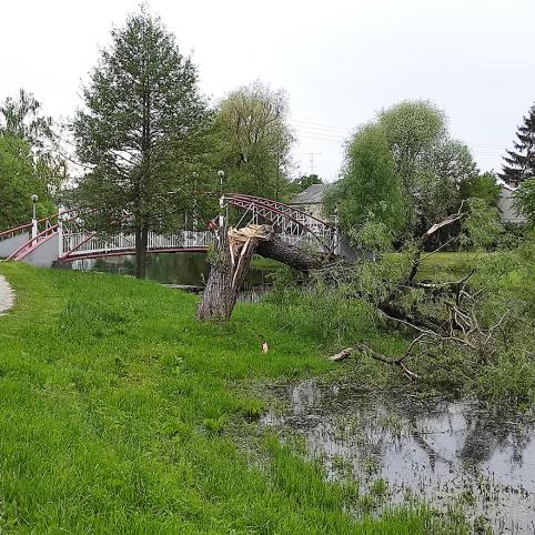Biržuose, Upės gatvėje, Apaščios upės pakrantėje, jau beveik dvi savaites praeivių akis „bado“ nulūžęs medis, kurį nuvertė neseniai siautusi vėtra. Toks medis mieste – ne vienintelis, yra dar vienas, kuris nuo žiemos mirksta upėje.