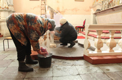 ALTORIUS: Moterys plovė bažnyčios centrinį altorių.