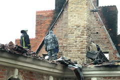 TYRĖJAI: Ant nudegusio vienuolyno stogo vakar visą dieną dirbo tyrėjai.