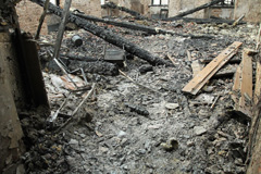 MUZIEJUS: Muziejaus, kur buvo eksponuojamos bažnytinio paveldo vertybės, patalpa visai sudegusi, po suodžiai — išsilydžiusios vertybės.
