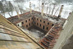 Bendrovės „Agrotech“ statybininkai valė aplink vienuolyną išmėtytus nuodėgulius, apdegusias čerpių duženas į traktorių. Vyrai sielojosi: savo rankomis restauravo vienuolyną, o dabar reikia semti darbo duženas.