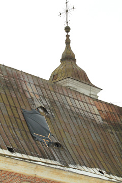 LOPAS: Užgesinus gaisrą buvo užlopytas pradegęs bažnyčios stogas.