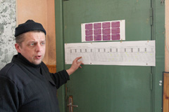 GRAFIKAS: Kelmės priešgaisrinės gelbėjimo tarnybos Tytuvėnų komandos ugniagesys Gintaras Vaičiulis rodo budėjimų grafiką, kuriame ne viena para, kai budi tik vienas ugniagesys.