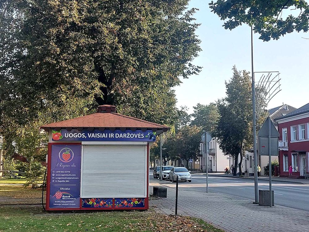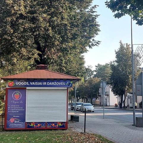 Kitas spaudos kioskas, esantis Vytauto gatvėje, prie miesto valgyklos, uždarytas jau seniai. Tiesa, prieš kurį laiką jame trumpam vyko prekyba – iš įmonės jį išsinuomojęs Biržų rajono ūkininkas Andrius Ragaišis prekiavo vaisiais ir daržovėmis. Šiemet kioskas atidarytas nebuvo, tačiau A. Ragaišio ūkio reklama ant statinio liko.