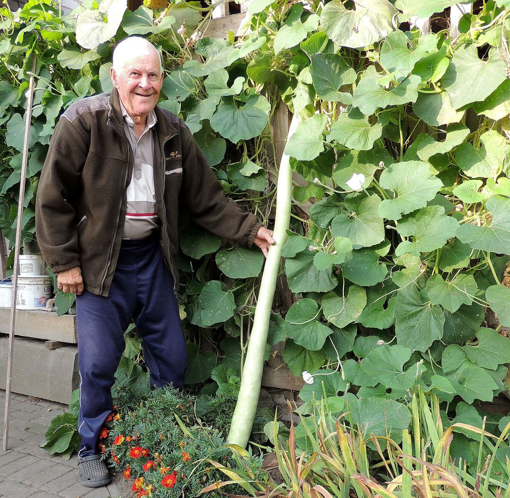 Aišku, kad ponas Vladimiras šiemet užaugino ilgavaisius moliūgus arba ilgamoliūgius. Kokios veislės moliūgai buvo pasėti, nėra aišku, nes pakelis nuo sėklų išmestas.